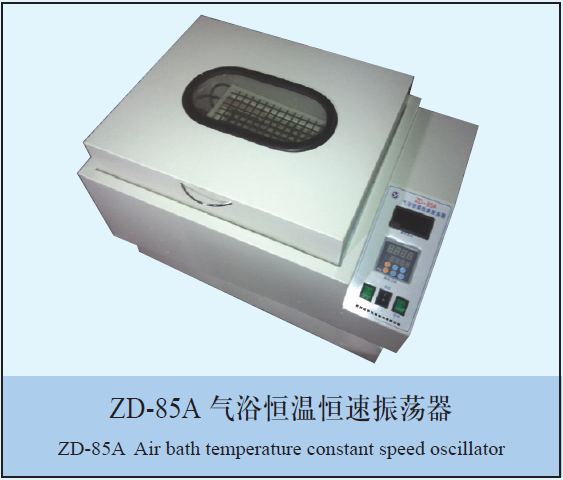 ZD-85A型氣浴恒溫振蕩器主要適用于各大中院校、醫(yī)療、石油化工、衛(wèi)生防疫、環(huán)境監(jiān)測(cè)等科研部門作生物、生化、細(xì)胞、菌種等各種液態(tài)、固態(tài)化合物的振蕩培養(yǎng)。本機(jī)具有結(jié)構(gòu)合理、操作簡便、穩(wěn)定性能高,采用數(shù)顯恒速裝置、電子定時(shí)、數(shù)顯測(cè)溫觀察直觀,并設(shè)計(jì)成往返、回旋振蕩于一體,使一機(jī)多用途等特點(diǎn),是實(shí)驗(yàn)實(shí)工作人員得心應(yīng)手的理想設(shè)備。