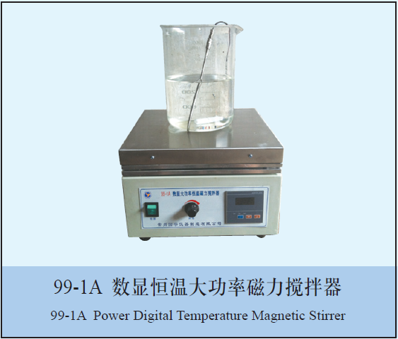 99-1A型數(shù)顯大功率恒溫磁力攪拌器廣泛用于各中大院校、環(huán)保、科研、衛(wèi)生、防疫、石油、冶金、化工、醫(yī)療等單位。本儀器功率大、無(wú)噪聲、不明火,采用永磁直流電機(jī),使用壽命長(zhǎng),工作臺(tái)使用不銹鋼材質(zhì),能攪拌10000ml~30000ml的溶液,是實(shí)驗(yàn)化驗(yàn)人員理想的工具。