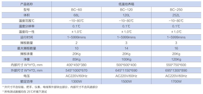 四、BC低溫培養(yǎng)箱技術(shù)參數(shù)