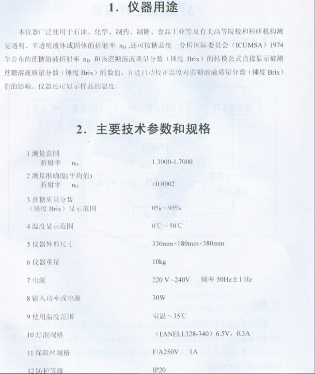 上海儀電物光WYA-2S數(shù)字阿貝折射儀使用說明書