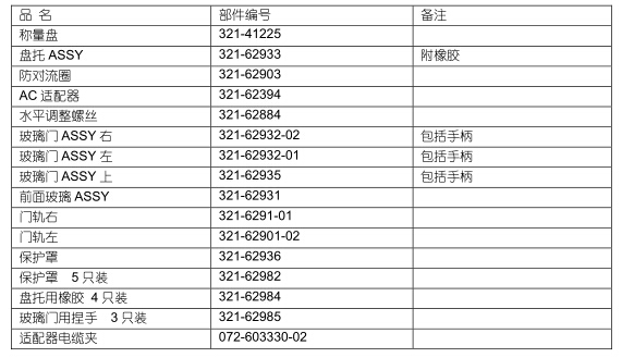 記載的部件編號,如有改動不預先通知。RS-232C 電纜不能保證對所有計算機都適用。另外,鎖定螺釘有可能無法固定天平。