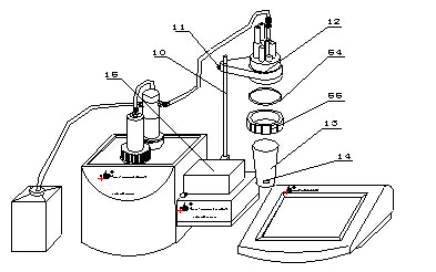 e) 儀器在滴定時(shí),要更換溶液,就要裝拆溶液杯,如上圖所示,先將緊定螺釘(11)放松,將整個(gè)溶液杯裝置抬高并旋轉(zhuǎn)至圖示位子,然后鎖緊緊定螺釘(11),手托住溶液杯(13),旋轉(zhuǎn)放松大螺帽(55),拿出溶液杯(13),倒掉溶液杯(13)中的溶液,清洗數(shù)次,注意,攪拌珠(14)也必須一起清洗,在溶液杯(13)中倒入被測(cè)溶液,注意,攪拌珠(14)必須放在溶液杯(13),的杯底。然后將溶液杯(13)安裝好,擰緊大螺帽(55),放松緊定螺釘(11),移下溶液杯裝置,使溶液杯(13)杯底接觸攪拌器(15)表面,并使溶液杯(13)放在攪拌器(15)的中間,最后擰緊緊定螺釘(11)。