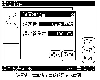 設(shè)置完畢,按“開始滴定”鍵,儀器即一次把滿滴定管蒸餾水推入稱量瓶?jī)?nèi),再用天平稱量。
