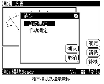 儀器共提供2種滴定模式,即自動(dòng)滴定和手動(dòng)滴定等。在儀器的起始狀態(tài)下,按“滴定”鍵,或者按菜單項(xiàng)上的“滴定”項(xiàng),儀器會(huì)顯示全部滴定模式,顯示如下,用戶可以選擇所需的滴定模式進(jìn)行相應(yīng)的滴定。