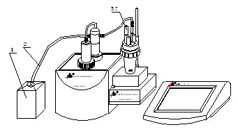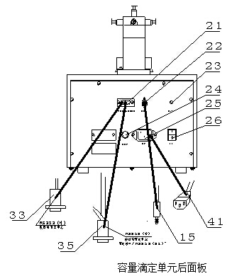 其中控制單元“滴定接口”(18)接容量滴定單元“滴定接口/RS232”(21);控制單元“測量接口(19)”接電導測量單元“測量接口/RS232”(32)。