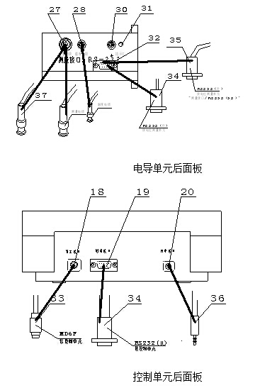c. 用控制單元―――>電導測量單元專用連接線(34)將控制單元“測量接口”(19)和永停測量單元“測量接口/RS232”(32)連接起來。