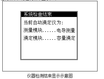 儀器開機后,自動開始自檢,之后即顯示“ZDJ-5 自動滴定儀 上海精密科學儀器有限公司”字樣,稍等,儀器開始檢測連接的滴定模塊和測量模塊,檢測結束,將檢測結果顯示如下。