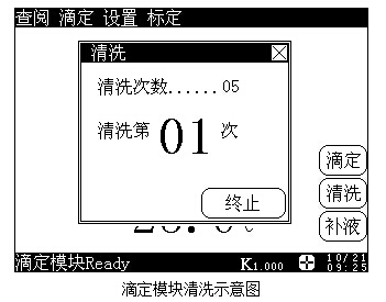 滴定結束,儀器會自動關閉攪拌器,并將控制滴定模塊補液到底,之后,儀器將回到查閱狀態(tài)(見查閱滴定數(shù)據(jù)部分)。