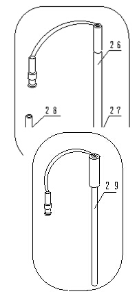 d 插入T―818―B―6型溫度傳感器(29),拔去E―201―C―9型pH復(fù)合電極(26)上的電極套(27),然后插入E―201―C―9型pH復(fù)合電極(26),將輸液管(2)放入貯液瓶的底部。