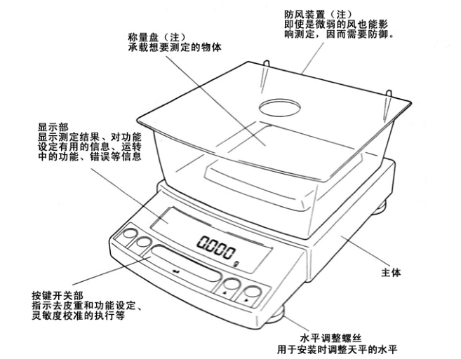 防風(fēng)裝置只是最小顯示為 0.001g 的機種的標(biāo)準(zhǔn)附件。