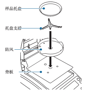 將托盤支撐放在水分儀主機的軸上。將托盤支撐的◆標志與防風的◆標志對準,然后插入到底。