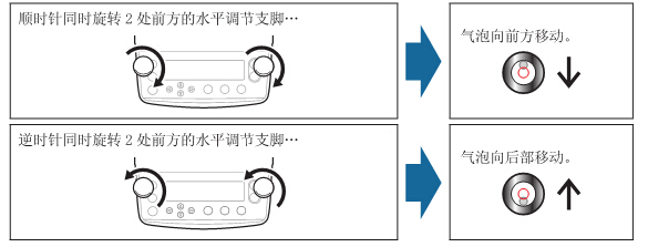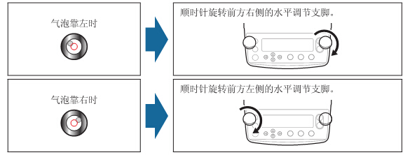 2旋轉左右水平調節(jié)支腳,使水平儀的氣泡位于左右的中央,此時,氣泡即使前后偏離也沒有問題。