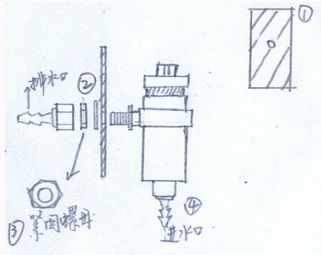 ④連接進水和排水管,進水口接直徑8mm軟管(內徑)或焊接直接10mm(外徑不銹鋼管。排水口接法同進水口。