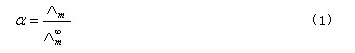 在弱電解質(zhì)溶液中,只有已經(jīng)電離的部分才能承擔(dān)傳遞電量的任務(wù)。在無限稀釋的溶液中可以認(rèn)為弱電解質(zhì)已全部電離,此時溶液的摩爾電導(dǎo)率為,可以用離子的極限摩爾電導(dǎo)率相加而得。而一定濃度下電解質(zhì)的摩爾電導(dǎo)率∧m與無限稀釋的溶液的摩爾電導(dǎo)率是有區(qū)別的,這由兩個因素造成,一是電解質(zhì)的不完全離解,二是離子間存在相互作用力。二者之間有如下近似關(guān)系: