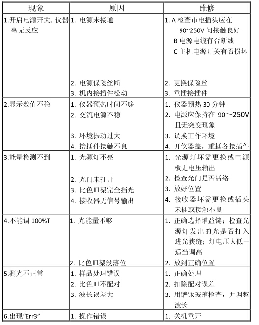五、儀器常見故障識別及處理